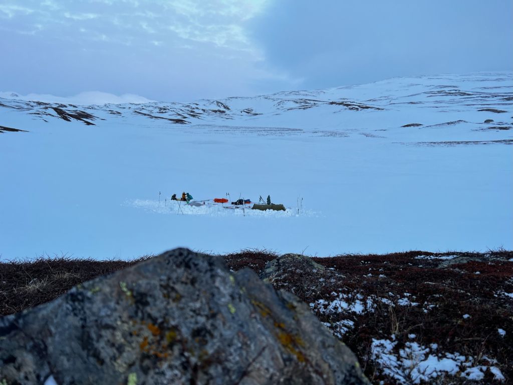 Dostaneme se přes druhý nejvyšší bod naší výpravy a tím je sedlo Tjäktja 1120 m.n.m. a zároveň dosáhneme polovinu naší cesty. Poté nás čeká dlouhý sjezd na lyžích. Tento den míříme k chatě Singi. Zde se nacházíme na křižovatce tras. Směrem na jih bychom pokračovali dál po trase Kungsleden, která končí v městečku Hemavan. Nicméně my se vydáme trasou kolem nejvyšších masivů Švédska.